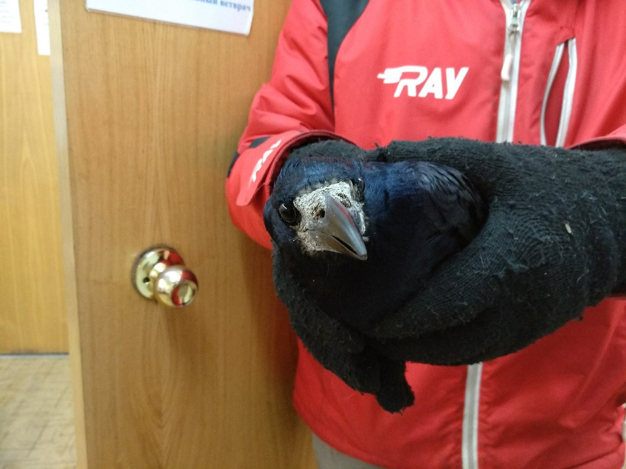 Грач, повреждено крыло, был подобран в морозы ноябре 2017 года, прооперирован. Летать, к сожалению, не сможет.