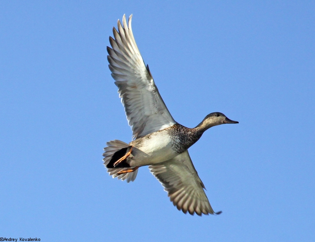 Серая утка в полёте