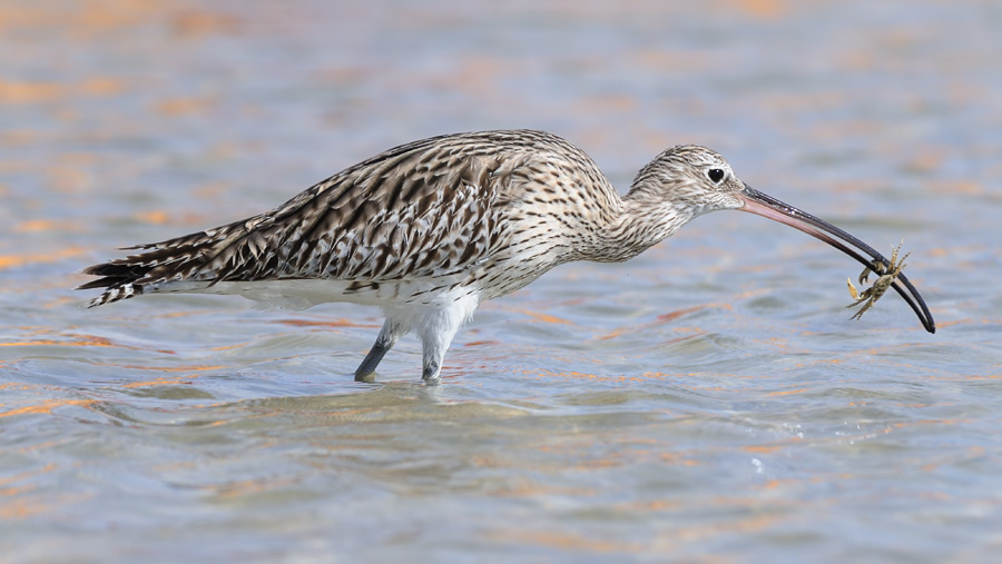 | Заметки автора | Ранним солнечным египетским утром кроншнеп ходил рядом с пляжем. Но вот он остановился, поймал краба и начал с ним разбираться. Пока он его пытался съесть, я успел сделать несколько кадров. |