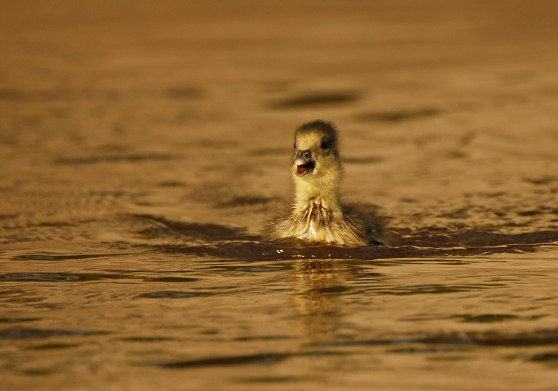 | Заметки автора | Плыли на байдарке по маленькой речушке Тарседаяха. Вдруг с правого берега взлетели мамаша и папаша, а птенцы бросились бежать по берегу от нас и только этот, не понятно по какой причине, поплыл на нас с писком. |