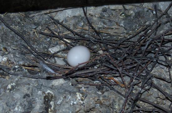 Сначала в гнезде сидит самец, потом туда залетает самка, самец вылетает. А самка разгребает гнездовой материал своими расправленными крыльями.