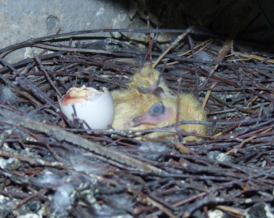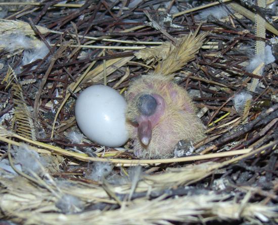В одном гнезде уже вылупились оба птенца.