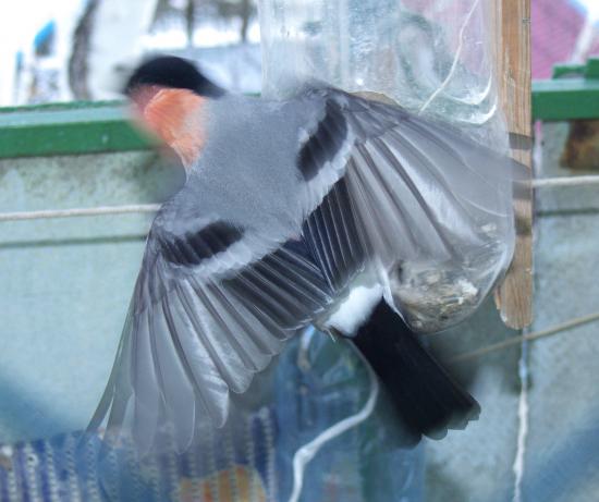 Недавно заметил, что налет снегирей на балконную кормушку обычно происходит утром в промежутке 7.00 - 8.30.