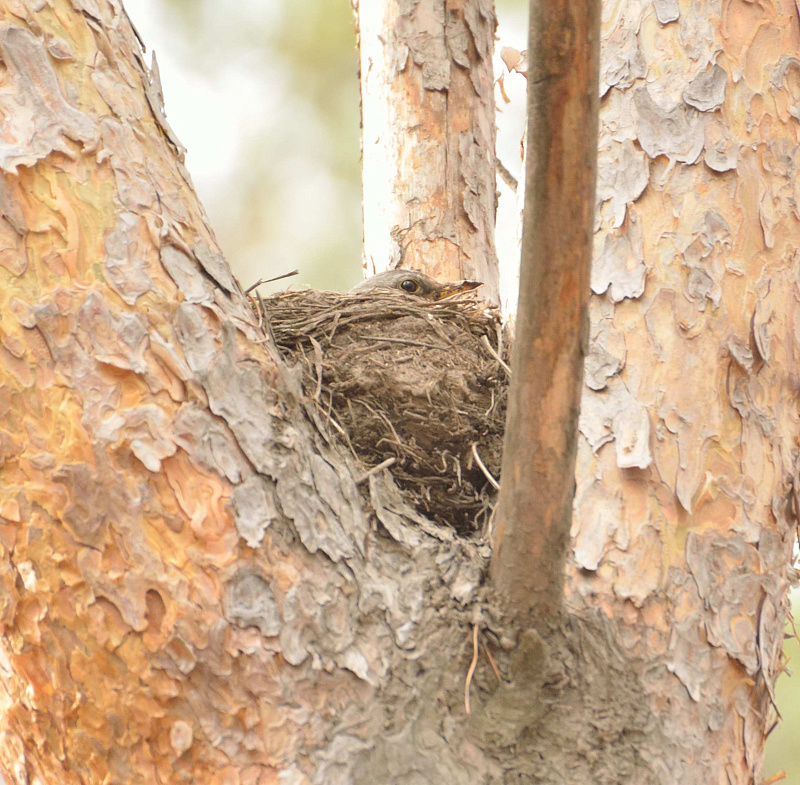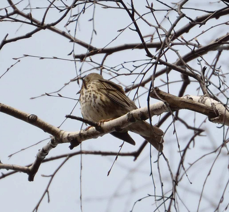 А еще ниже - уже в лесу встретился певчий дрозд