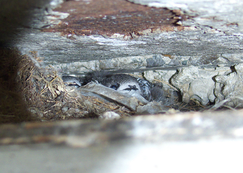Позавчера в гнезде в щели в стене в ИЯФе появились стрижата.
