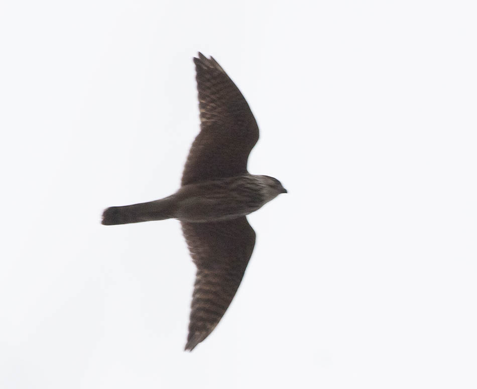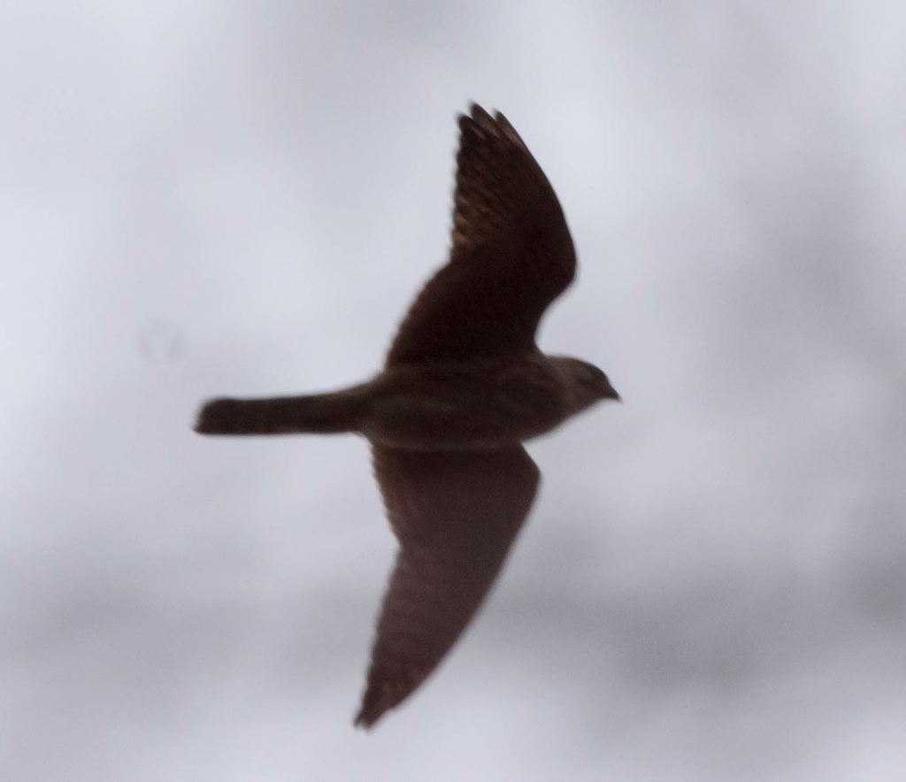 Вообще, когда он мелькнул, я решил, что сапсан (на фоне неба рисунка вообще не было видно). Был явно покрупнее пустельги, ну, м.б. как очень крупная пустельга.