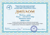 Иркутску вручён почётный диплом «Город – попечитель птиц» 15 мая 2025 года в Музее истории города Иркутска им. А.М. Сибирякова проходило весьма необычное мероприятие – вручение диплома о присвоении нашему городу почётного звания «Город – попечитель птиц». Иркутск – первый и пока единственный город в России, получивший по решению бюро Центрального совета Союза охраны птиц России (СОПР) это почётное звание.
